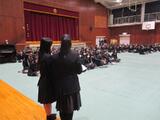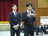 執行部の司会進行のもと、1,2年生からのメッセージとともに折り鶴「道」が手渡されました。3年生からのメッセージもステキでしたね。