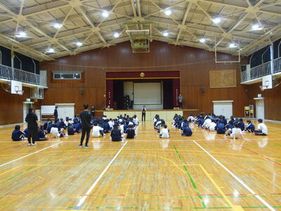 2年ドッヂビー大会 投稿: ホームページ管理者 (14:44) 最初の学年行事。2年生の熱気が体育館に広がっていました。 男の子も、女の子も一緒に楽しんでいるところが一番すてきだぁと感心しました。 優勝した2年1組がのみなさん、おめでとう。 惜しくも、負けてしまったチームもしっかり応援していましたね。 大会終了後、話を聞く姿も立派でしたね。