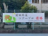 もうお気づきかとおもいますが、横断幕が増えております。プロデビューシーズンのステップアップツアーで早くも1勝したマエダレイナ先輩の活躍の応援横断幕です。地域の方が設置しました。
