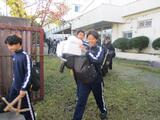 1年生男子保健体育(剣道)の様子です。試合等でも使用される竹刀を使った「正面素振り」「正面打ち」の試験が次回から始まります。またスポーツチャンバラの剣も活用します。